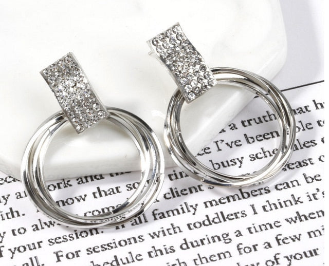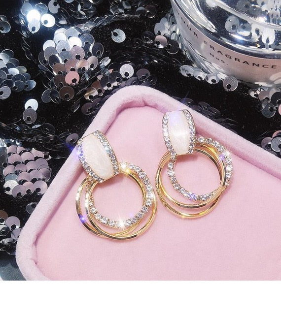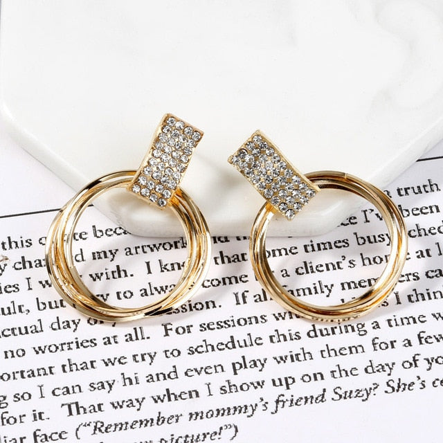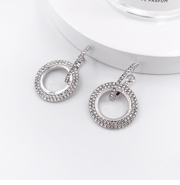 New design fashion hanging earrings geometric round shiny rhinestone earrings women's jewelry wholesale