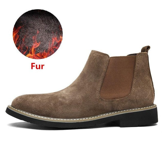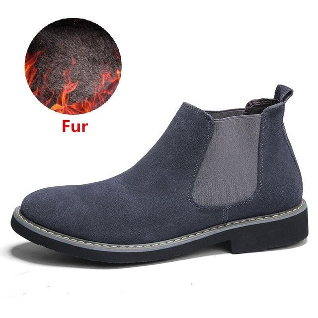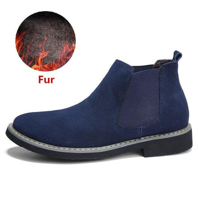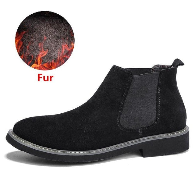 New Men Chelsea Boots Ankle Boots Fashion Men's Brand Cow suede Leather Quality Slip Ons Motorcycle Warm Men's Boots Big Size 46