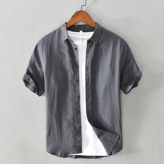 New white shirt men summer short sleeve breathable linen cotton tops solid high quality man clothing Camisa masculina 566