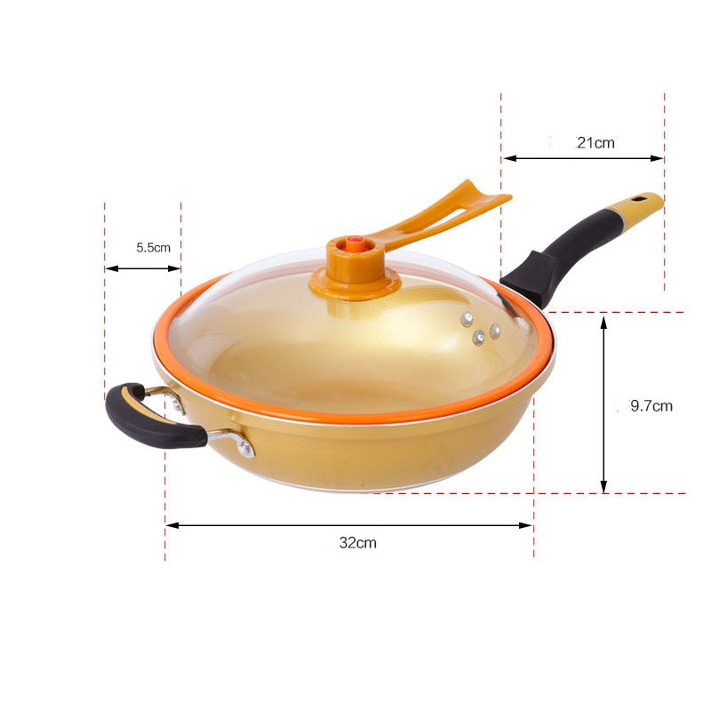 Non-stick Copper Frying Pan Without Fume Coating and Induction Cooking Gold Vacuum Health Pot for Gas and Induction Cooker Wok