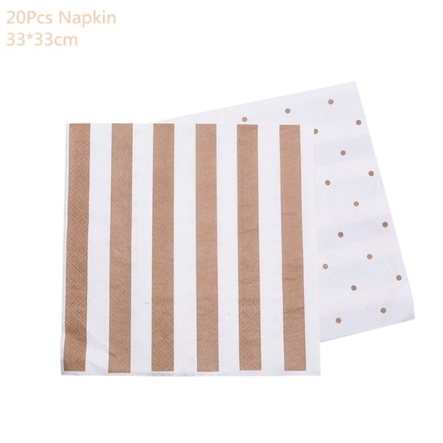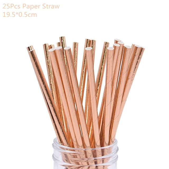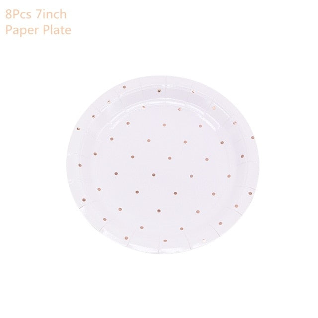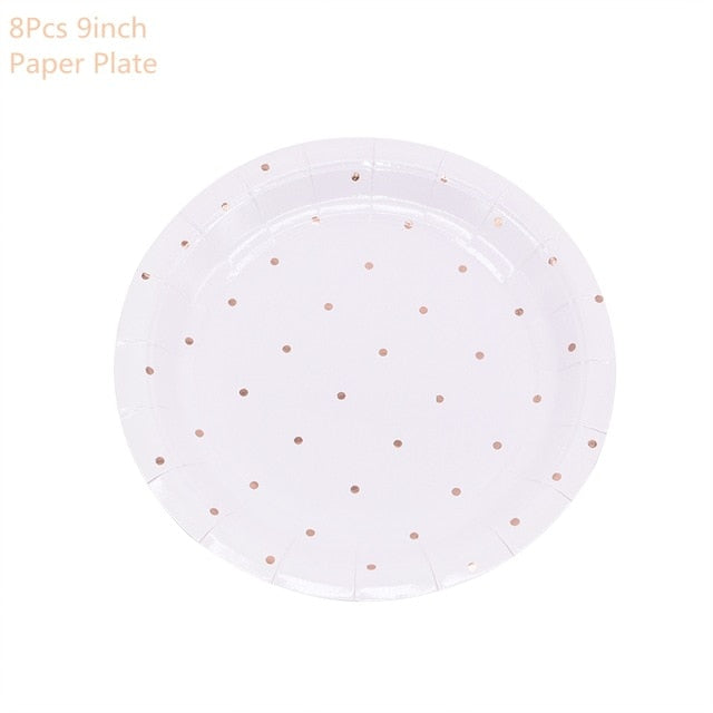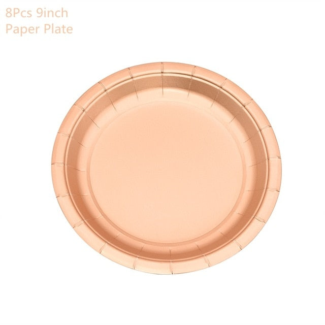 Rose Gold Party Disposable Tableware Set Party Paper Cups Plates Straws Party Table Decoration Wedding Birthday Party Supplies