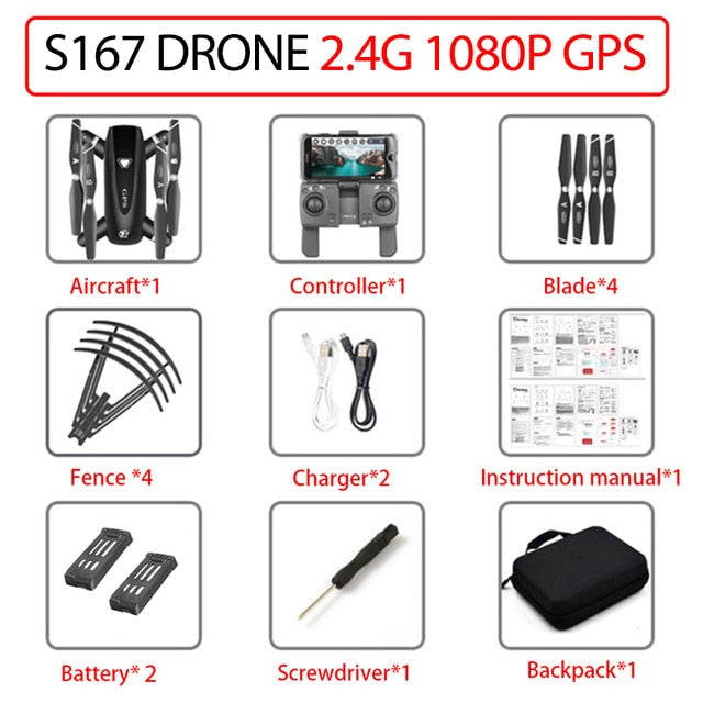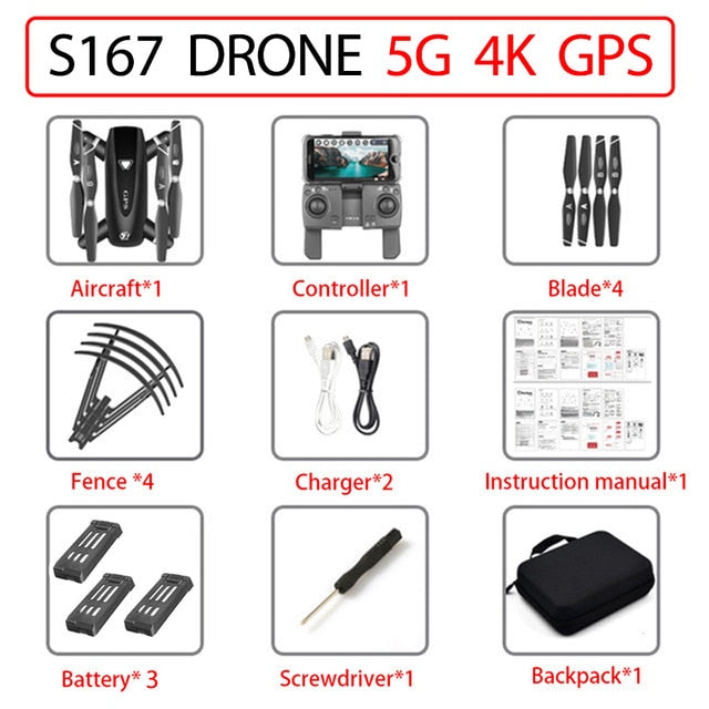 S167 GPS Drone With Camera 5G RC Quadcopter Drones HD 4K WIFI FPV Foldable Off-Point Flying Photos Video Dron Helicopter Toy