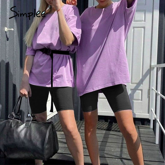 Simplee Casual Solid Outfits Women's Two Piece Suit with Belt Home Loose Sports Tracksuits Fashion Bicycle Summer Hot Suit 2020