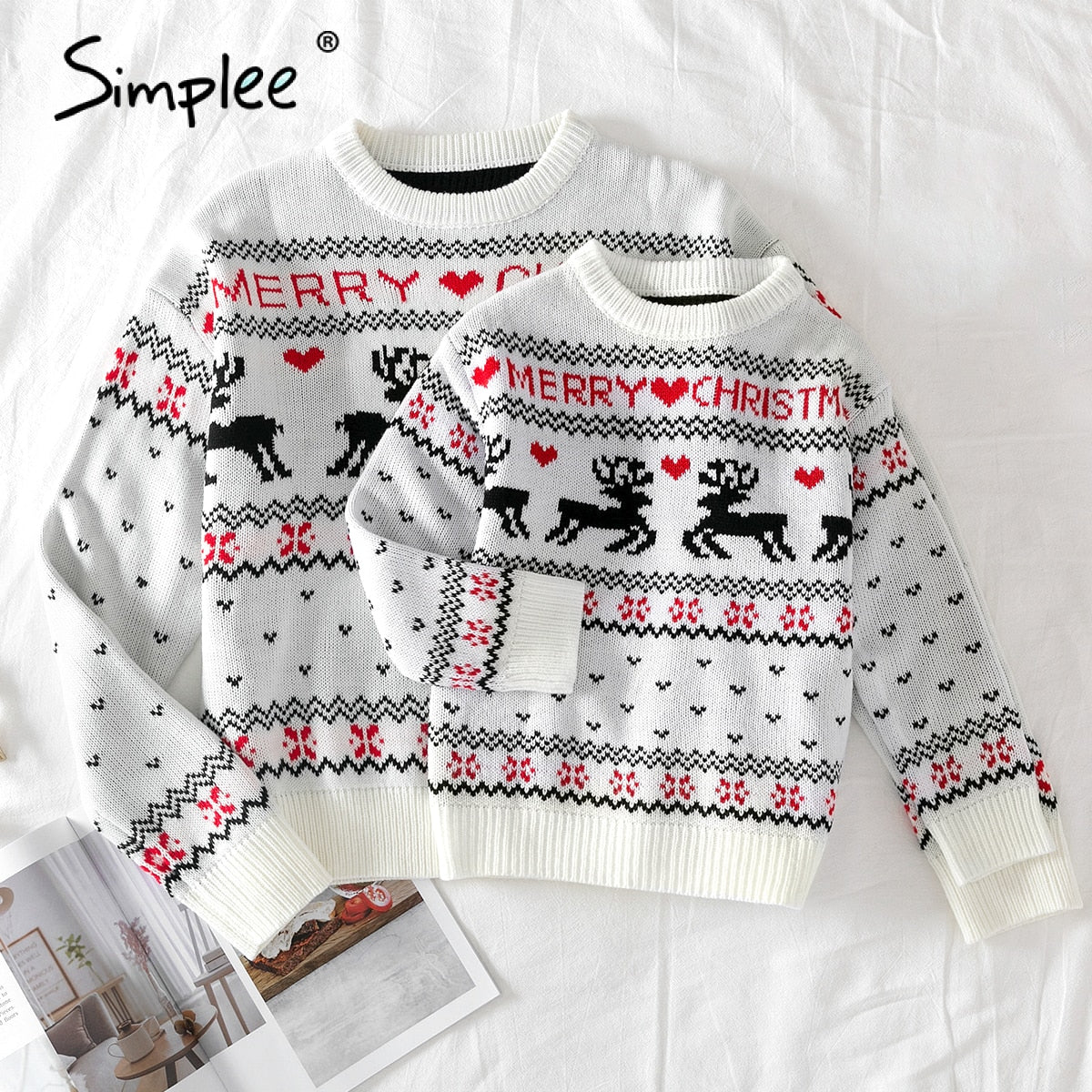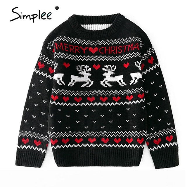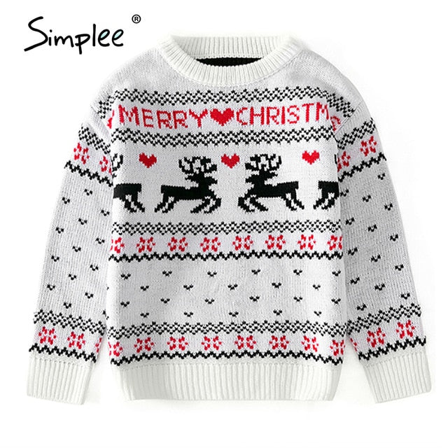 Simplee O-neck Christmas Sweater Family matching outfits Autumn winter Christmas deer print knitted pullovers 2020 New year