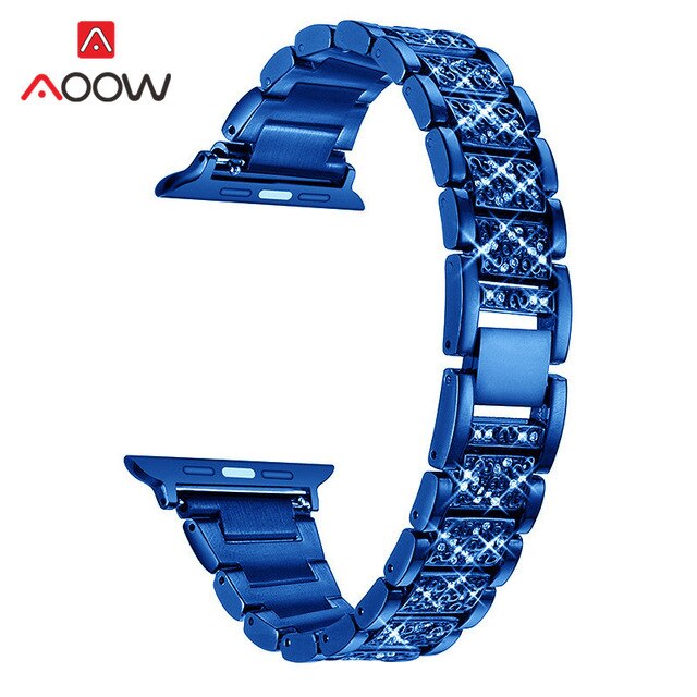 Stainless Steel Strap for Apple Watch 4 5 38mm 42mm 40mm 44mm Rose Pink Diamond Jewelry Women Metal Bracelet Band for iwatch 123