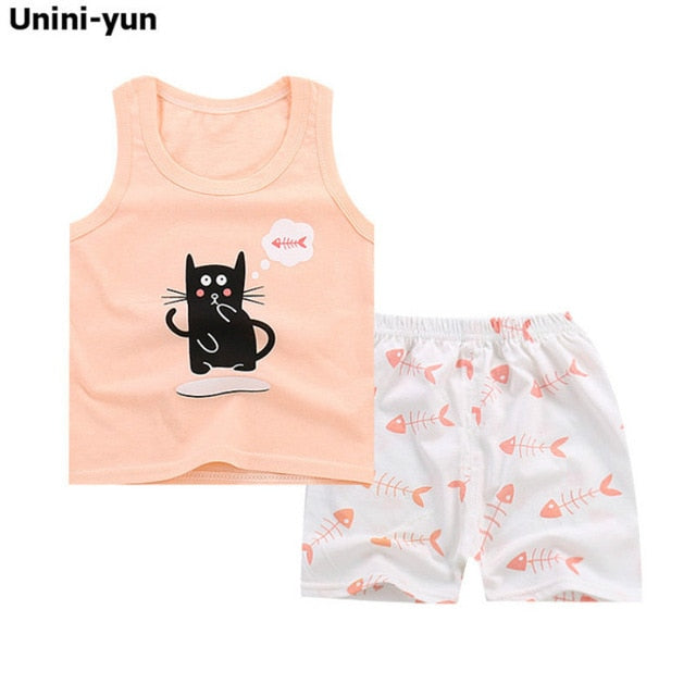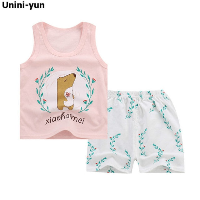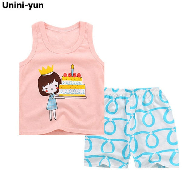 Summer Kids Clothes Children Clothing Baby Boy Set Toddler Baby Girls Clothing Set Cotton Cartoon T-shirts+Shorts for 1 2 3 4Y
