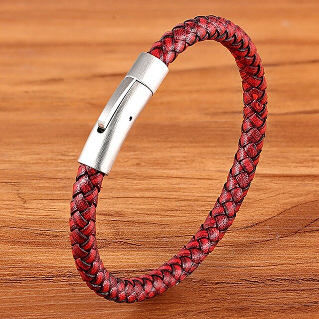 Name: Stainless Steel Watch Real Leather Braided Bangle Bracelet