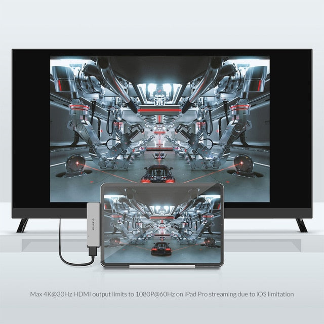 USB C Multi-Port Hub for New iPad Pro 11/12.9, with 4K HDMI, USB 3.0, SD/Micro SD Card Readers, Power Delivery and 3.5mm Aux