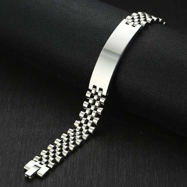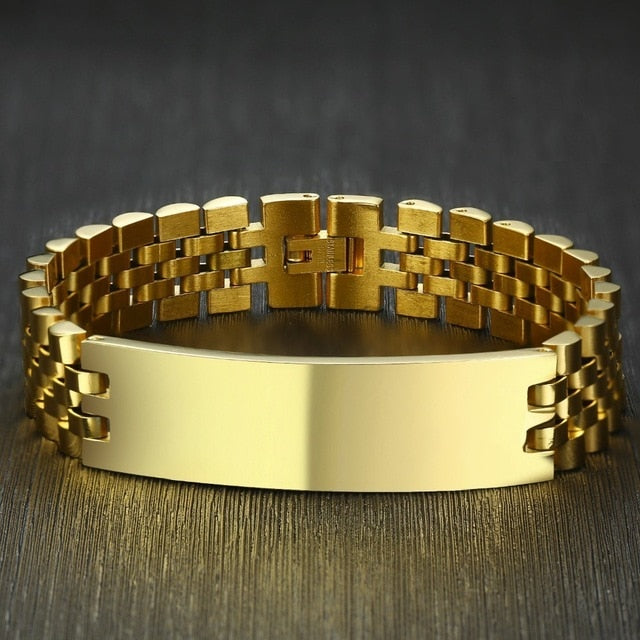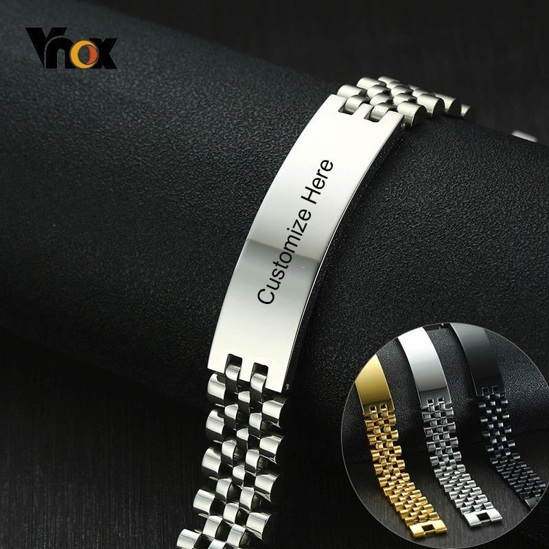 Vnox 15mm Chunky Bracelets for Men Free Engraving 3 Color Stainless Steel Watch Band with ID Bar Design Tough Man Custom Jewelry