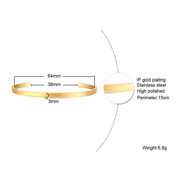 Vnox Personalize Bangle for Women Men Stainless Steel Simple Cuff Bracelets Unisex Classic Jewelry Custom BFF Gift