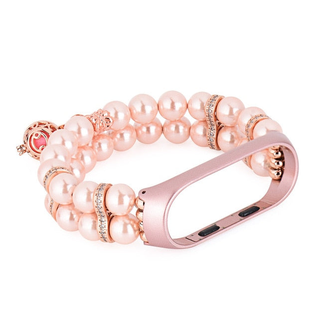 Women Beads Jewelry Bracelet for Xiaomi Mi Band 5 4 3 Watch Strap for MIband5 4 Chain Faux Pearl Luxury Wrist Belt