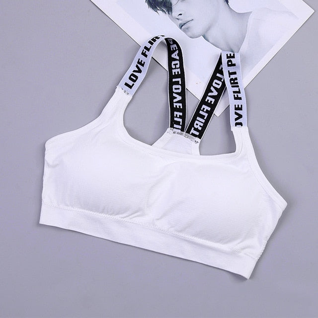 Women Sport Bra Fitness Top Letters Yoga Bra For Cup A-D Black White Running Yoga Gym Fitness Crop Top Women Push Up Sports Bras