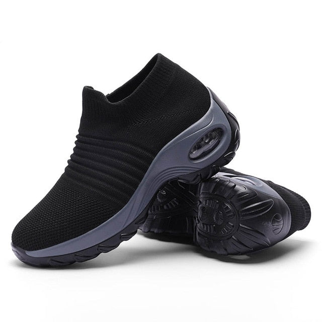 Womens Flats Slip On Shoes for Women Sock Sneakers Platform 2019 Comfortable Soft Ladies Spring Buty Damskie Sepatu Wanita Black