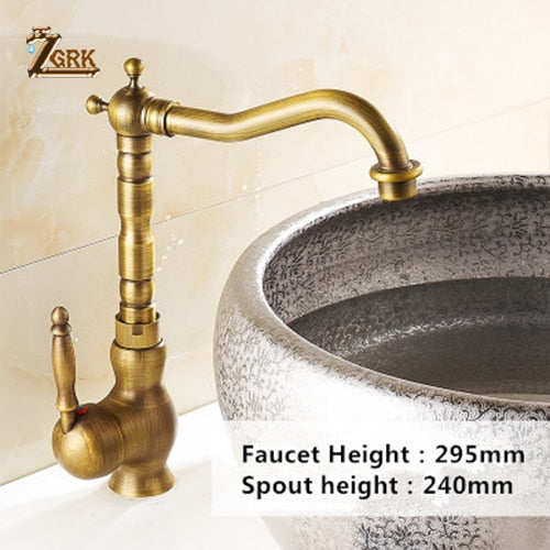 ZGRK Home Improvement Accessories Antique Brass Kitchen Faucet 360 Swivel Bathroom Basin Sink Mixer Tap Crane